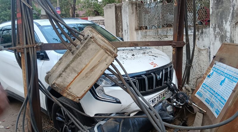 छिंदवाड़ा:तेज रफ्तार कार ने बाइक को घसीटा, ट्रांसफार्मर में घुसी,बिजली गुल