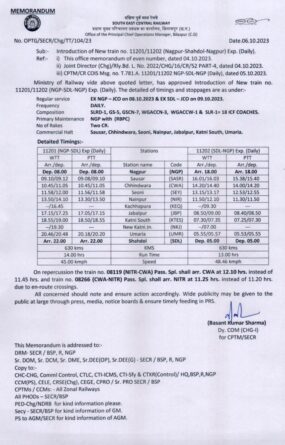 नागपुर-शहडोल ट्रेन 8 अक्टूबर से नियमित चलेगी देखें समय सारणी