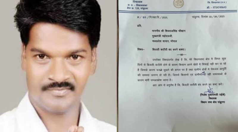 पांढुरना के MLA नीलेश उईके ने सीएम शिवराज को बिजली कटौती बंद करने लिखा पत्र