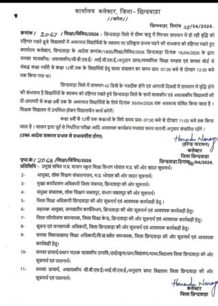 तत्काल प्रभाव: यह आदेश तत्काल प्रभाव से पूरे छिन्दवाड़ा जिले में लागू कर दिया गया है।