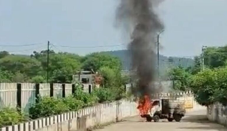 सौंसर में गैस सिलेंडर डिलीवरी वाहन में लगी आग…धू धू कर जला वाहन