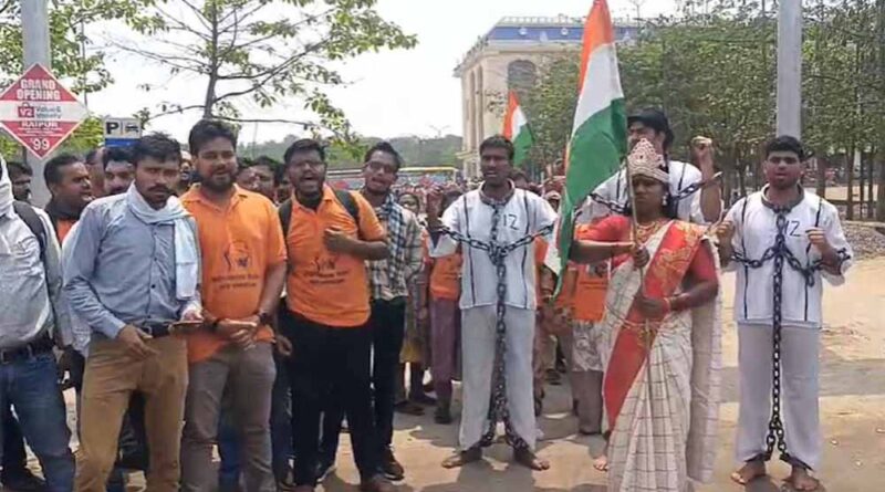 BEd सहायक शिक्षकों की अनिश्चितकालीन हड़ताल जारी है. रविवार को भटगांव बस स्टैंड से भगत सिंह, राजगुरु, सुखदेव की वेशभूषा के साथ रैली निकालकर अभ्यर्थी प्रदर्शन कर रहे हैं.