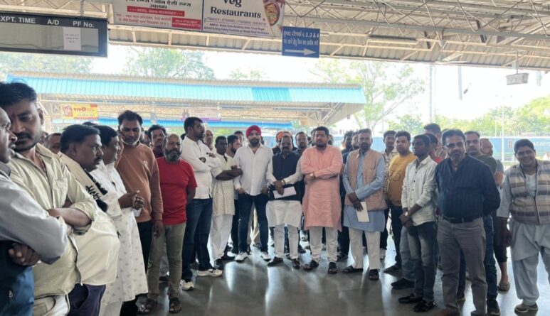 DRM के सामने विरोध: दादा जी धूनी वाले मंदिर के सामने रेलवे निर्माण रोकने की मांग, सैकड़ों संगठन एकजुट
