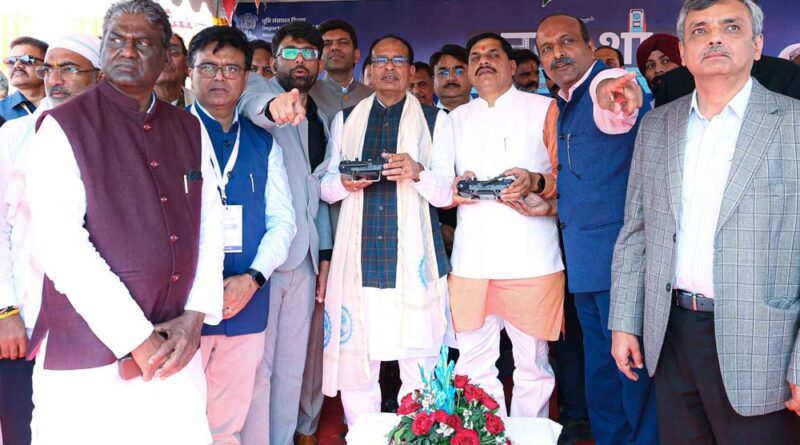 मुख्यमंत्री डॉ. यादव और केन्द्रीय मंत्री श्री चौहान ने ड्रोन उड़ाकर किया शहरी भूमि सर्वेक्षण