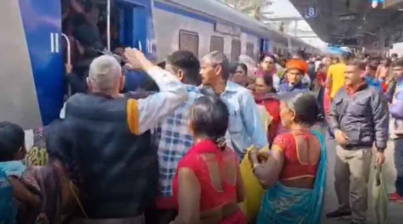 ट्रेन में बैठने के लिए भिड़े यात्री