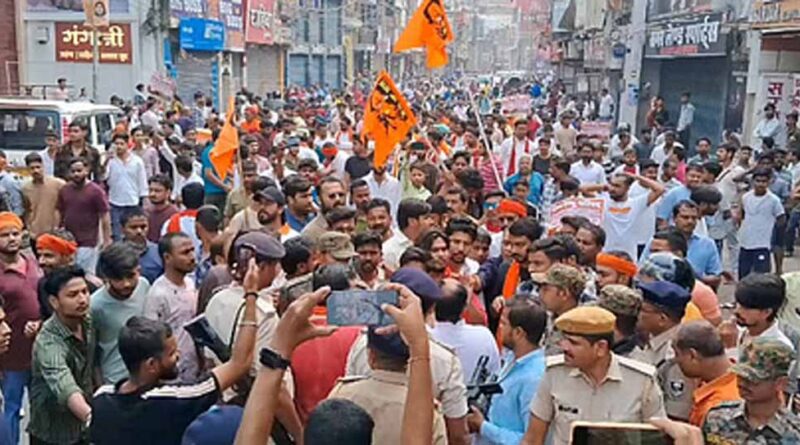 मुजफ्फरपुर में मंदिर को तोड़े जाने के विरोध में हजारों की संख्या में हिंदूवादी संगठनों के कार्यकर्ता सड़कों पर